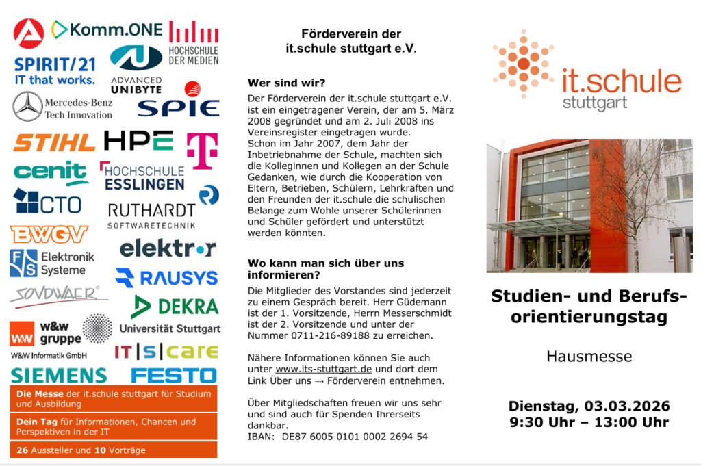 Die it.schule ist das Ausbildungszentrum für IT- und Medienberufe in der Region Stuttgart. Wir sind eine öffentliche Schule. Schulträger ist die Stadt Stuttgart. Mit modernster Ausstattung bieten wir eine fundierte Ausbildung in einem der innovativsten und attraktivsten Wirtschaftsbereiche: der Informations- und Medientechnik.