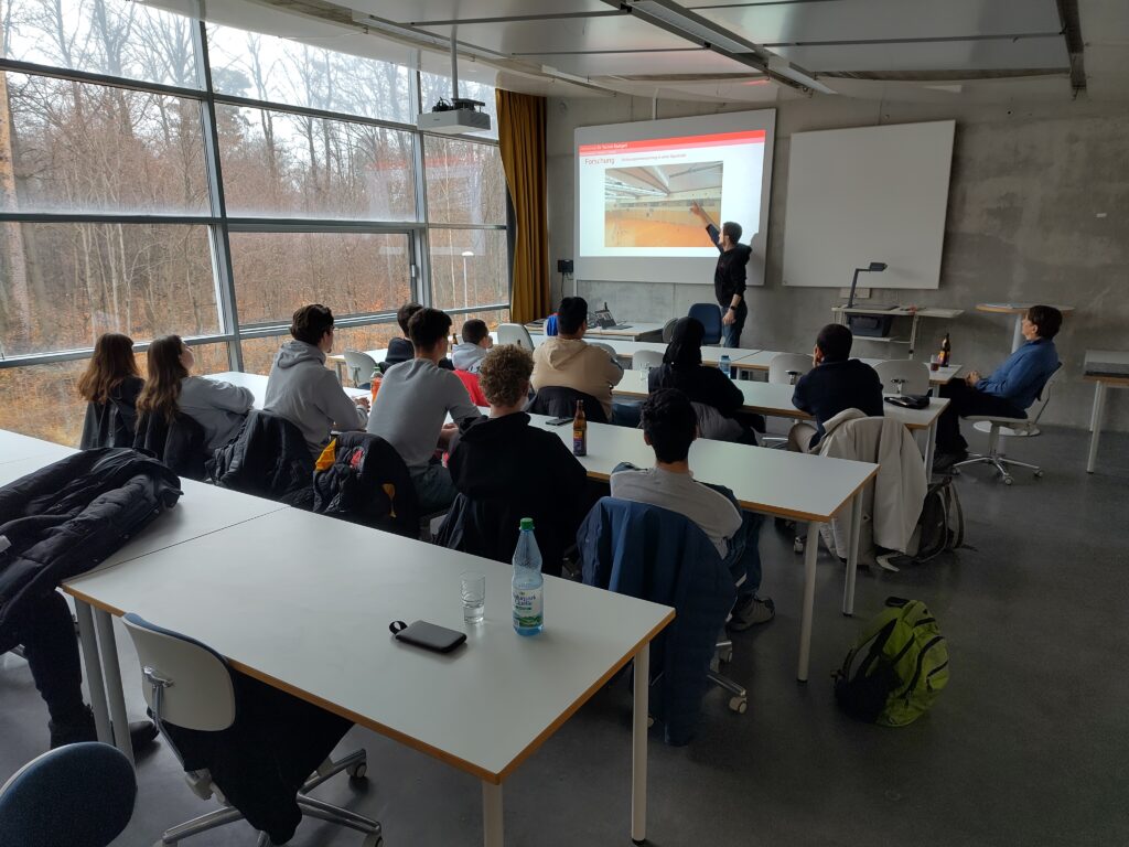 Am 29. Januar 2026 unternahmen wir mit unserem Physikkurs einen Ausflug zum Zentrum für Akustik und Bauphysik in Stuttgart-Vaihingen. Nach unserer Ankunft erhielten wir eine informative Präsentation über die Grundlagen der Akustik und Bauphysik sowie über mögliche Studiengänge an der Hochschule für Technik Stuttgart (HFT). Für unser leibliches Wohl war ebenfalls gesorgt – Getränke und Butterbrezeln trugen zu einer angenehmen Atmosphäre bei.