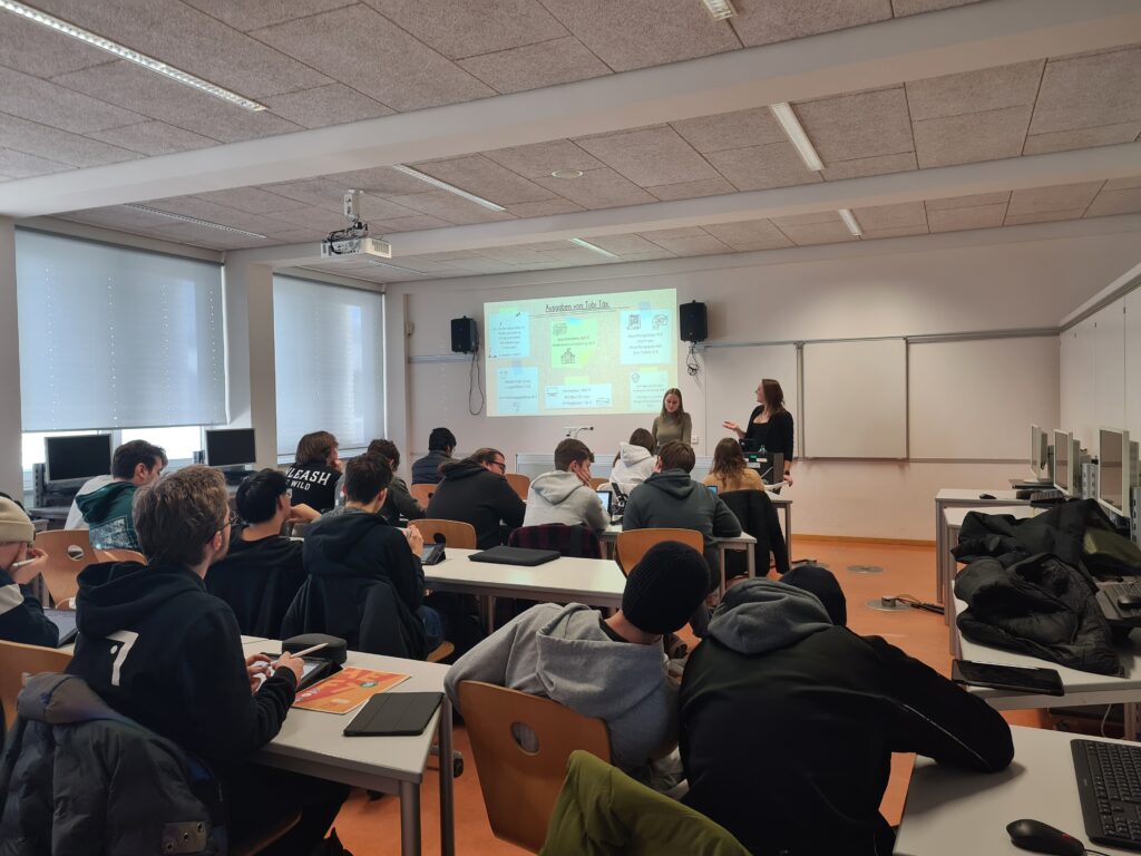 Am vergangenen Dienstag stand der Wirtschaftsunterricht für zwei Klassen ganz im Zeichen der Praxis: Die TGIE2 des Technischen Gymnasiums und die 1BK2 des Berufskollegs wurden im Rahmen des Programms „Steuer macht Schule“ von zwei Mitarbeiterinnen des Finanzamts besucht.